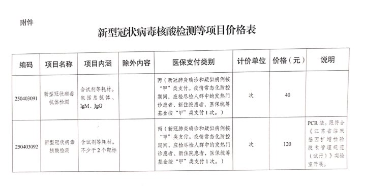 市医保局、市卫健委3日联合发出通知,降低新型冠状病毒核酸检测和抗体检测两项医疗服务项目价格。降价后,新型冠状病毒核酸检测为每次120元,新型冠状病毒抗体检测(包括总抗体、IgM、IgG)为每次40元,按医保支付类别“丙”类支付。该价格为最高指导价,不得上浮,自7月4日起开始执行。