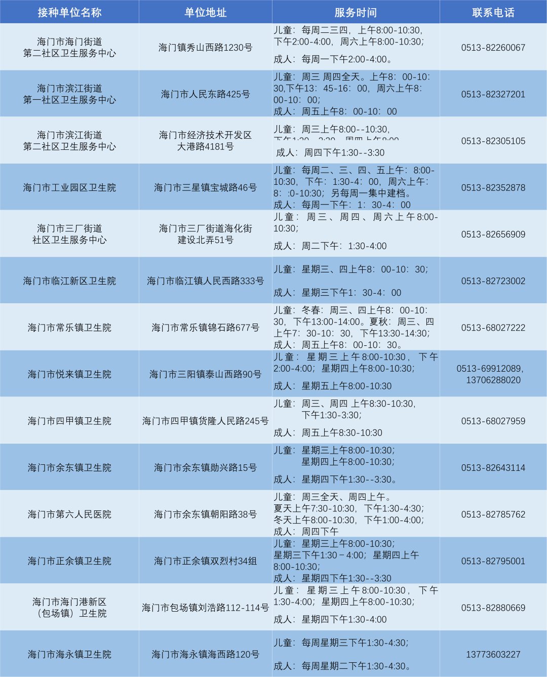 海门市14家儿童预防接种单位,均兼设成人预防接种单位。