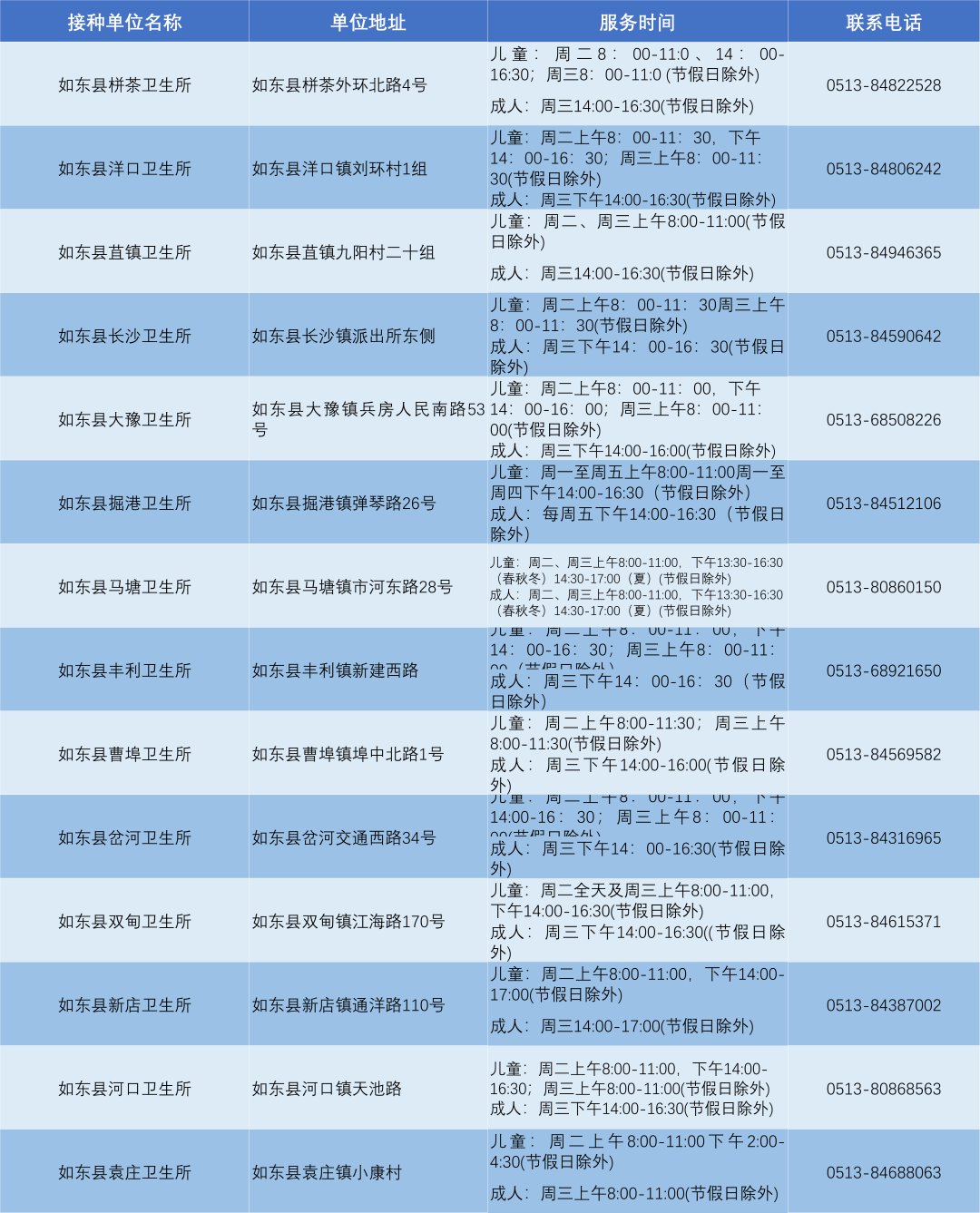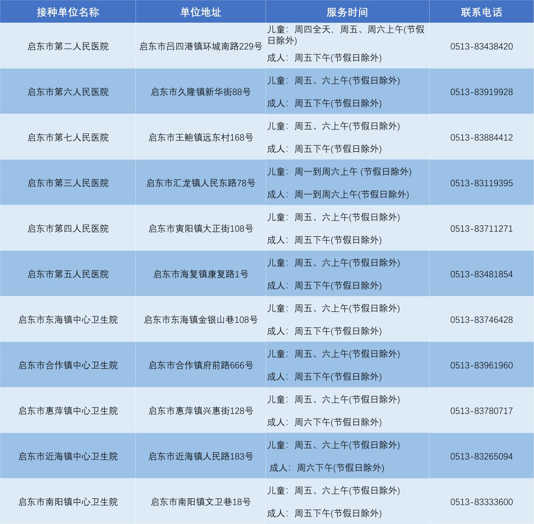 启东市11家儿童预防接种单位,均兼设成人预防接种单位。