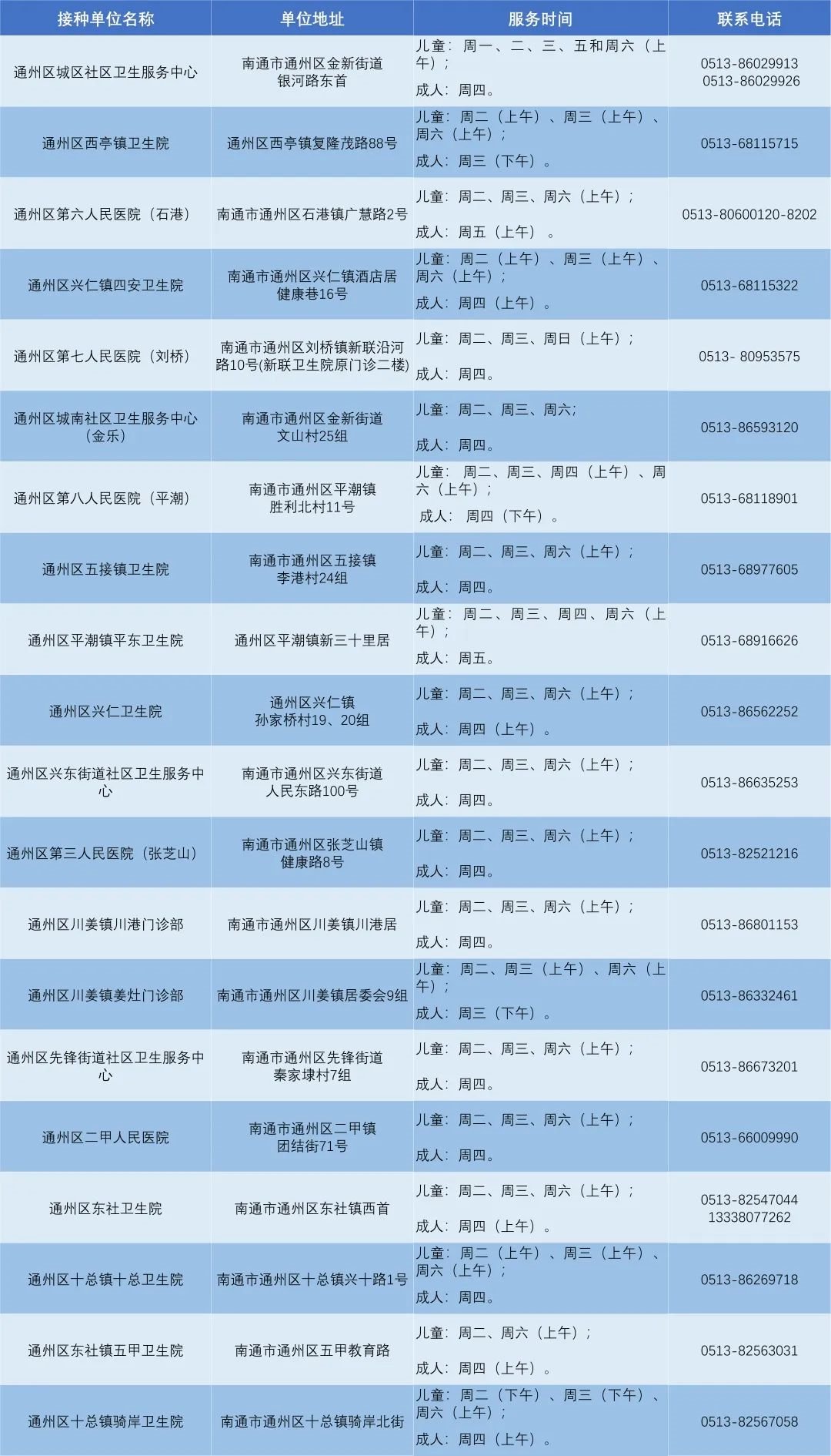 港闸区6家儿童预防接种单位,均兼设成人预防接种单位