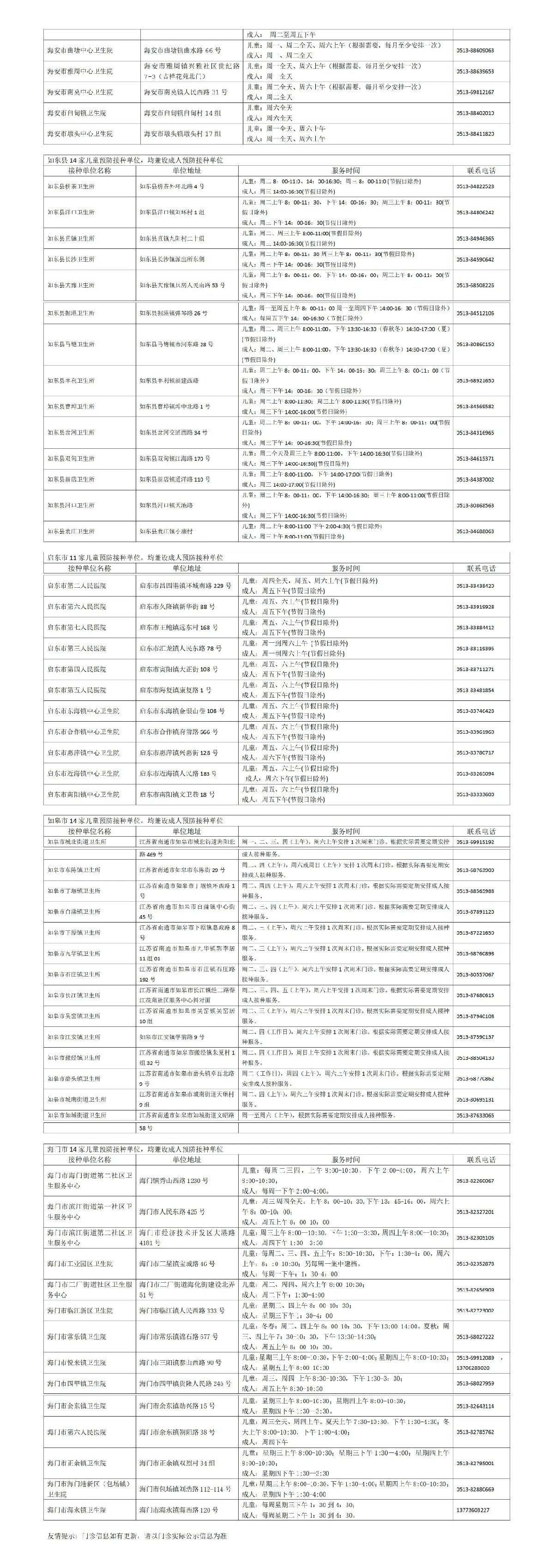 南通市儿童预防接种单位和成人接种单位公示(4月)