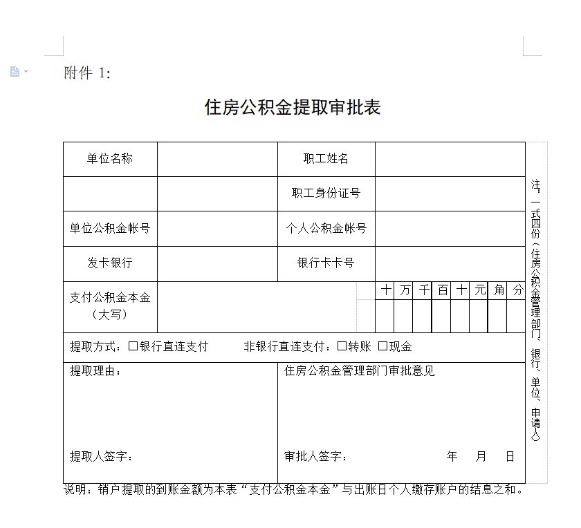 提取申请人凭提取证明材料,到市住房公积金管理中心所属分支机构申请提取住房公积金,经审批,出具《住房公积金提取审批表》。