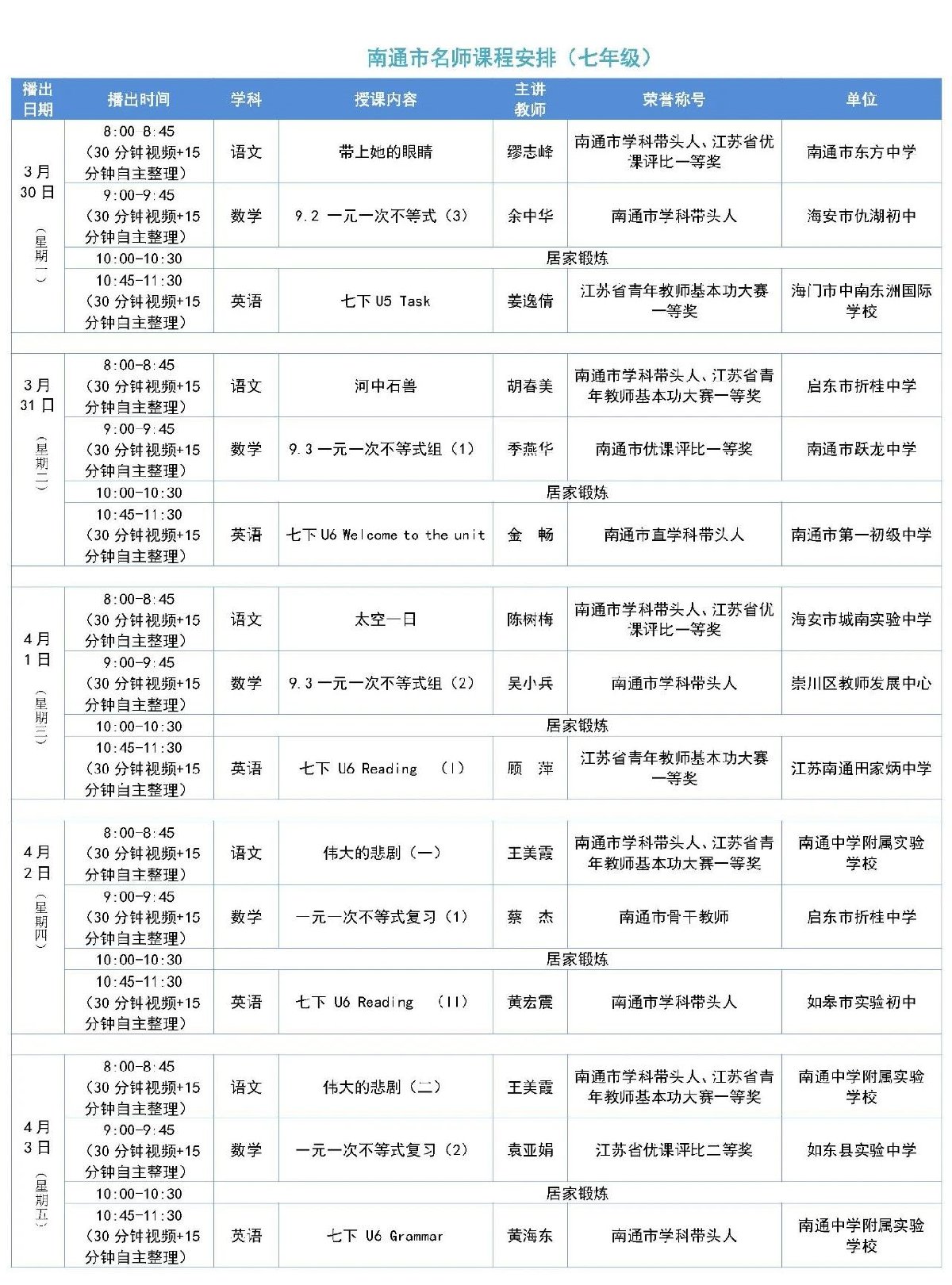 南通市教育局公布第八期线上答疑、心理辅导和课程安排