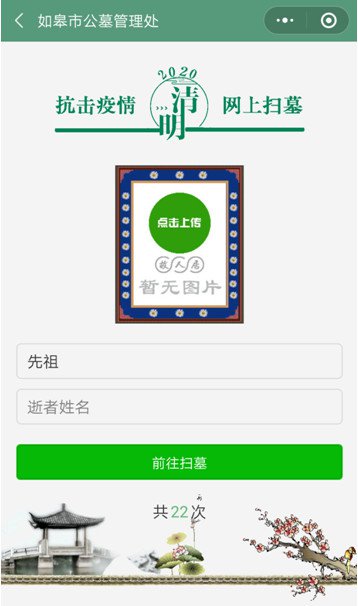 填写【逝者姓名】,上传【逝者相片】(没有照片可忽略不传)。填好后点击【前往扫墓】即可前往祭祀界面。
