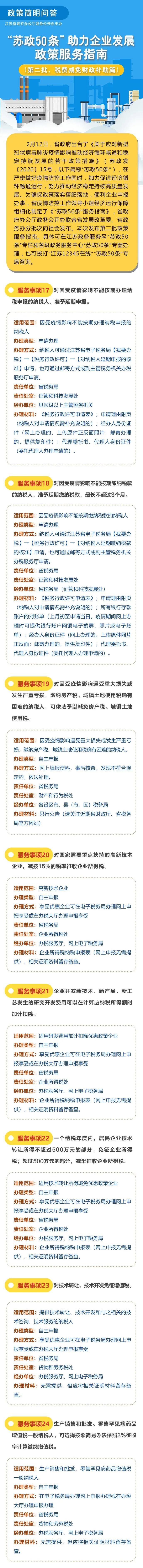权威系列发布!“苏政50条”第二批政策服务指南,共34项服务事项,涉及税费减免、财政贴息、财政补助等扶持。