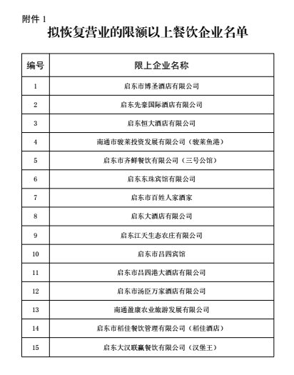 一、餐饮企业有序恢复营业。从2020年3月7日起,全市限额以上餐饮企业在严格落实防控措施的前提下可先恢复营业,综合性酒店(宾馆)仅限餐饮部分营业。已用作集中隔离点的酒店(宾馆)恢复营业时间另作安排。