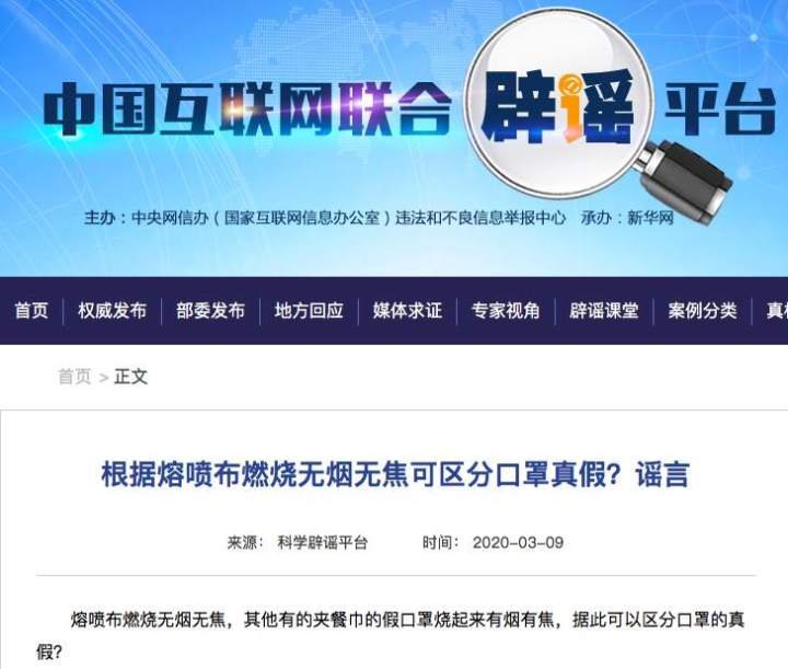 熔喷布燃烧无烟无焦,其他有的夹餐巾的假口罩烧起来有烟有焦,据此可以区分口罩的真假?