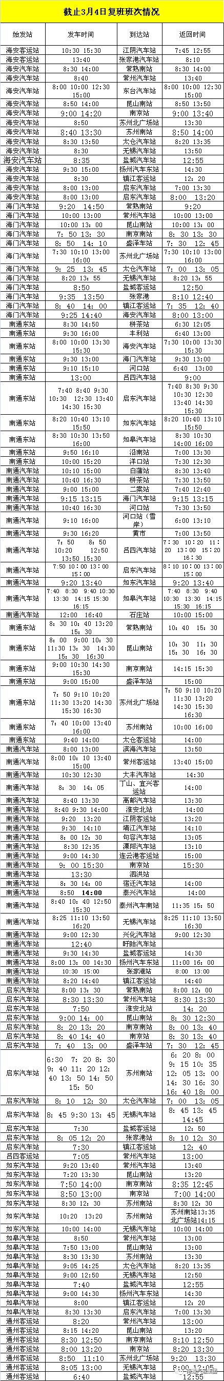南通汽运集团一共恢复了县市际客运线路哪些班次?(最新)