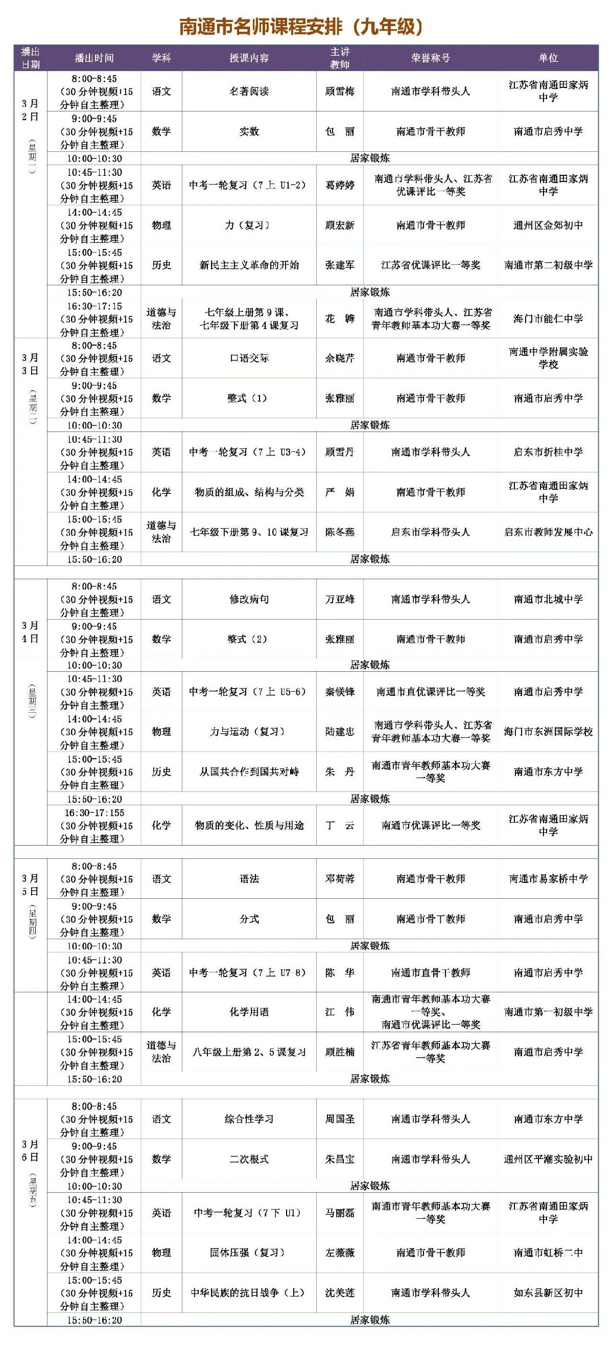 根据省政府统一部署,全市中小学从3月2日起继续实施线上教育教学。为全面落实省学校防控组《关于做好疫情防控期间中小学线上教育教学工作的通知》要求,市教育局继续组织部分骨干教师开发了一批中学各年级学科课程、小学居家学习指导课程及各学段共性课程。为拓宽线上教育教学渠道,方便更多学生进行线上学习,保护学生视力,从本期开始,参照省“名师空中课堂”播放路径,以上所有课程在手机端、网络端和电视端同步播出,供各地各校结合实际选择使用,欢迎全市广大师生及家长点播收看。