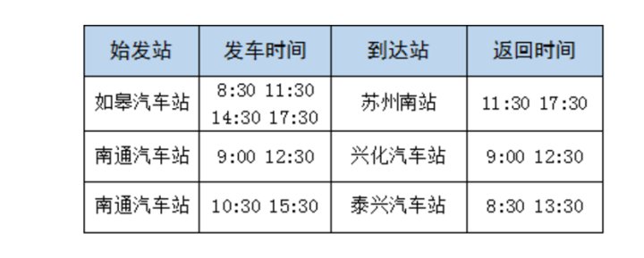 南通汽车站至泰兴方向10:30、15:30发车。