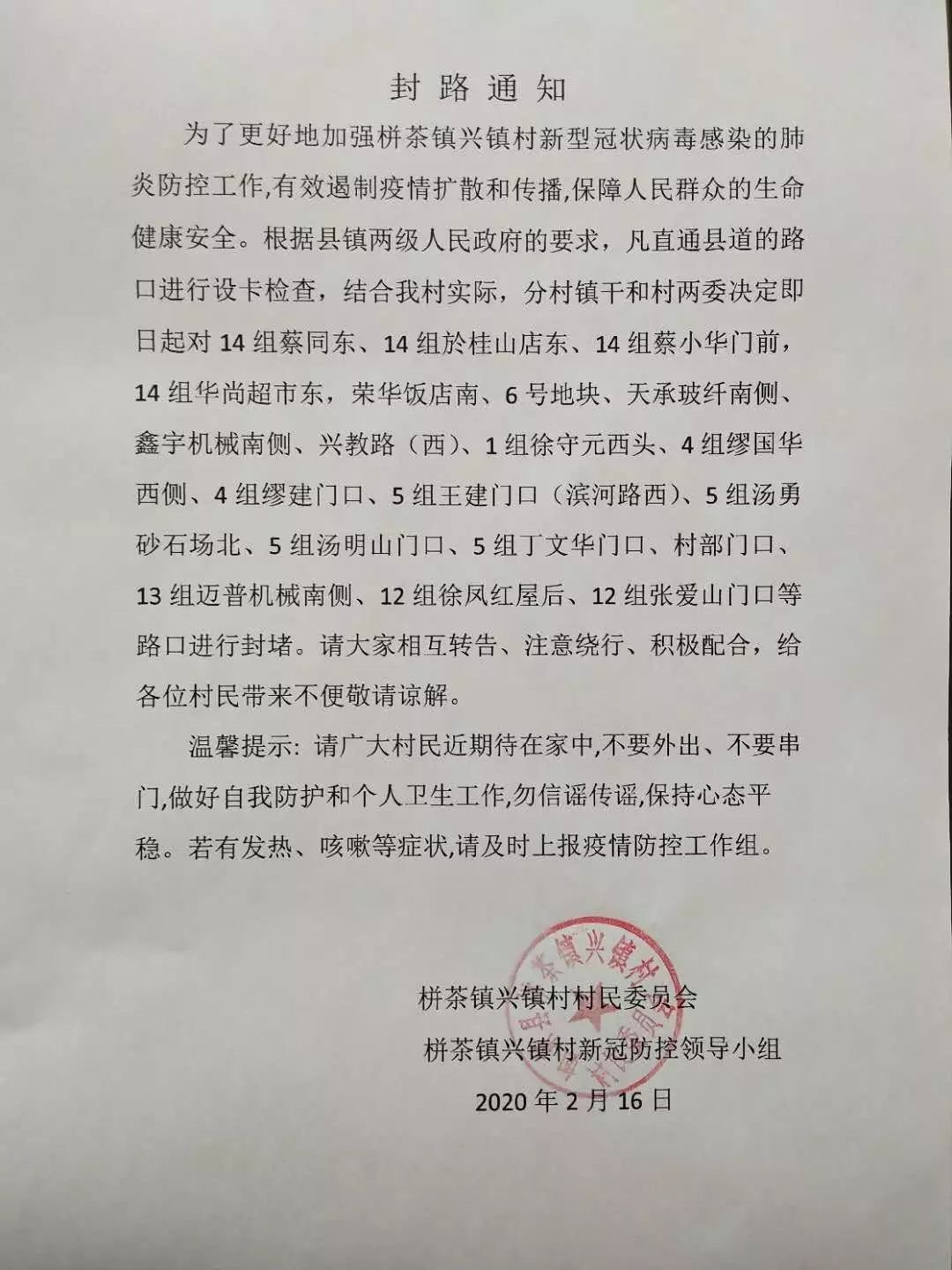 南通如东县栟茶镇兴镇村封路通知(如东沿口镇)