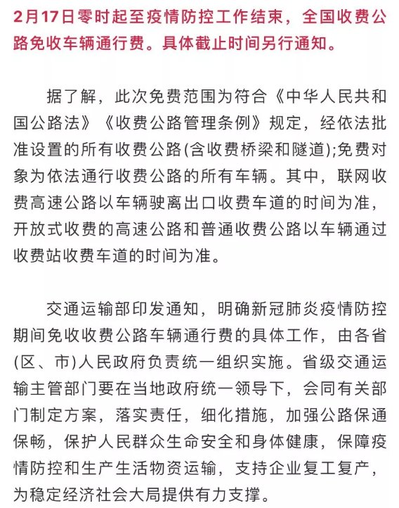 疫情防控期间全国收费公路免收车辆通行费