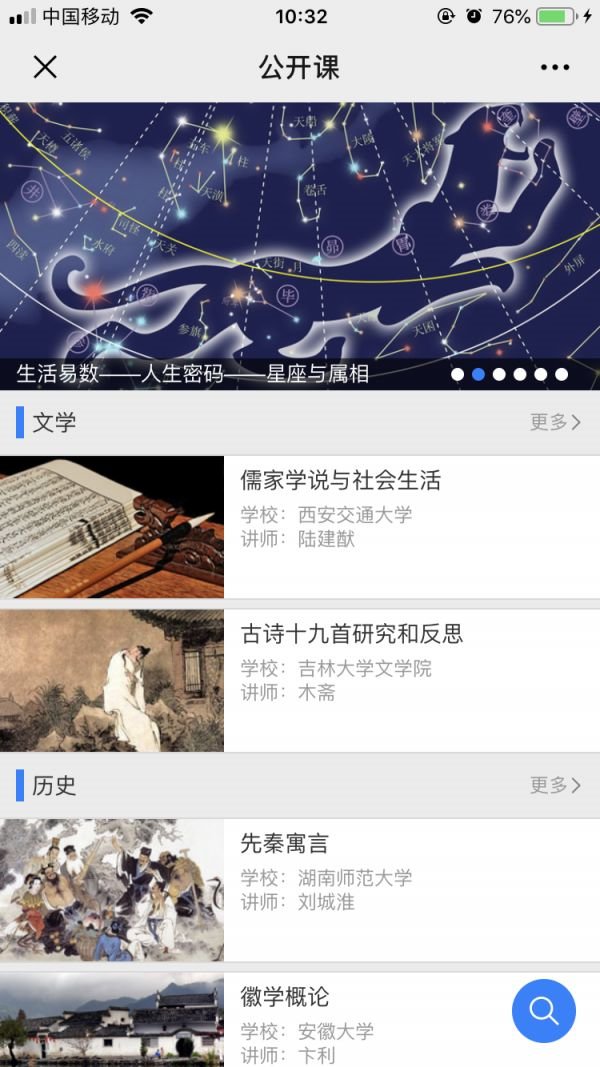 打开如皋市图书馆微信公众号,在“云悦读”栏目中选择“公开课”就可以直接观看,既有科普讲解,也有学术课程,授课教师来自全国各地,课程权威、覆盖广泛。