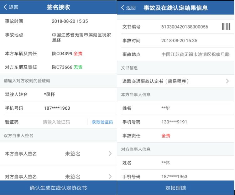 4、事故双方自行协商或申请在线认定,只需要事故一方当事人操作采集事故相关信息,另一方当事人配合验证确认。