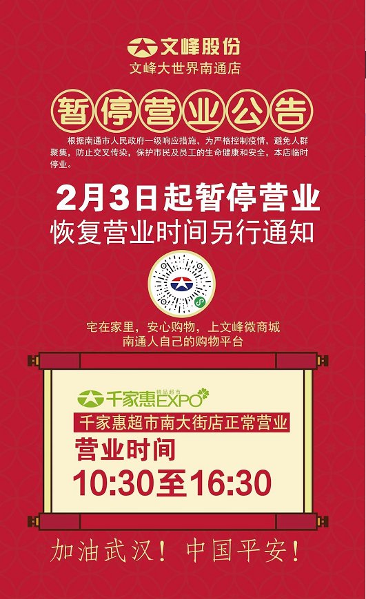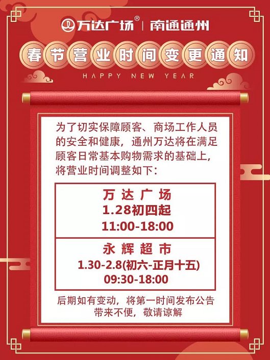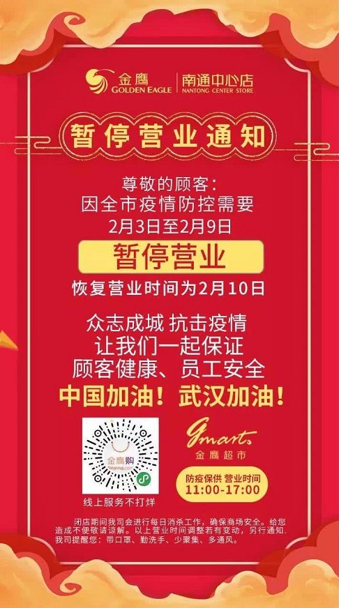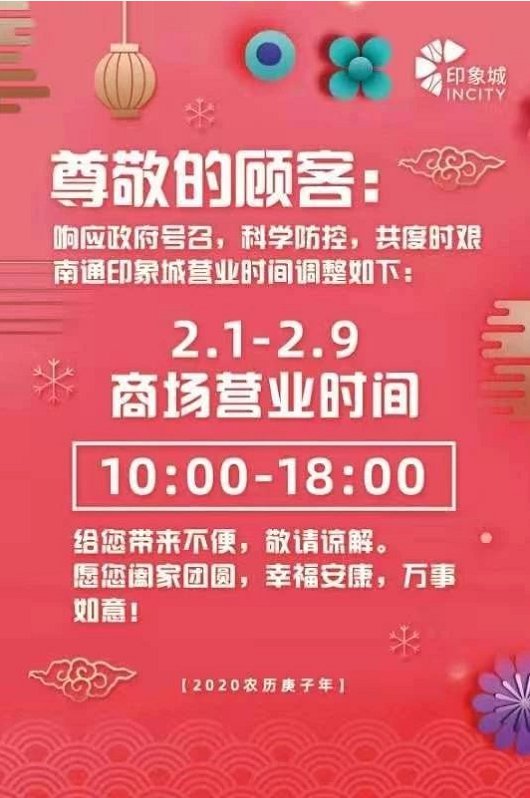 南通肺炎期间各商场超市营业时间调整