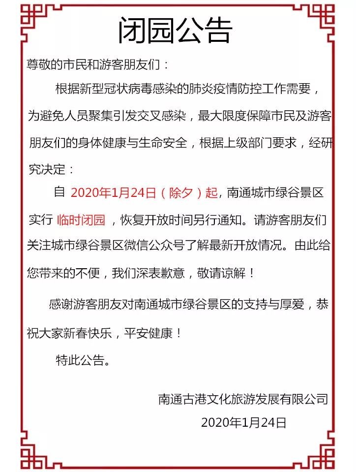 南通各大景区闭园公告(2021年南通景区闭园吗)