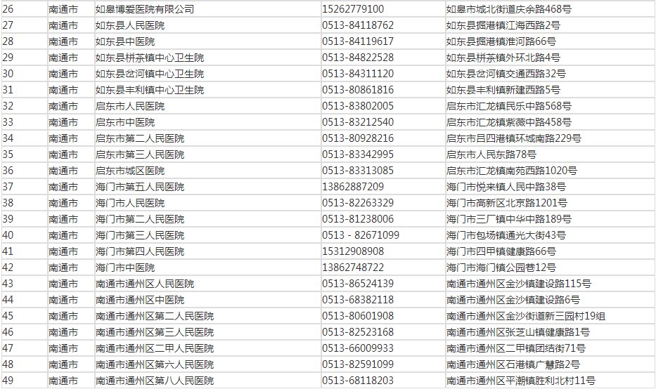 南通市新型肺炎发热门诊的医疗机构一览
