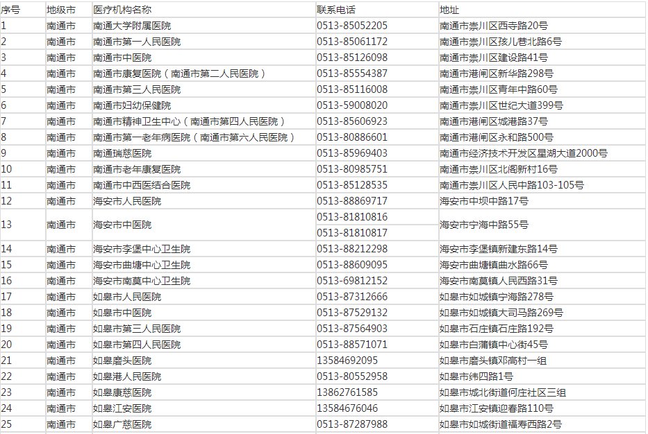 二、南通市设有发热门诊的医疗机构信息
