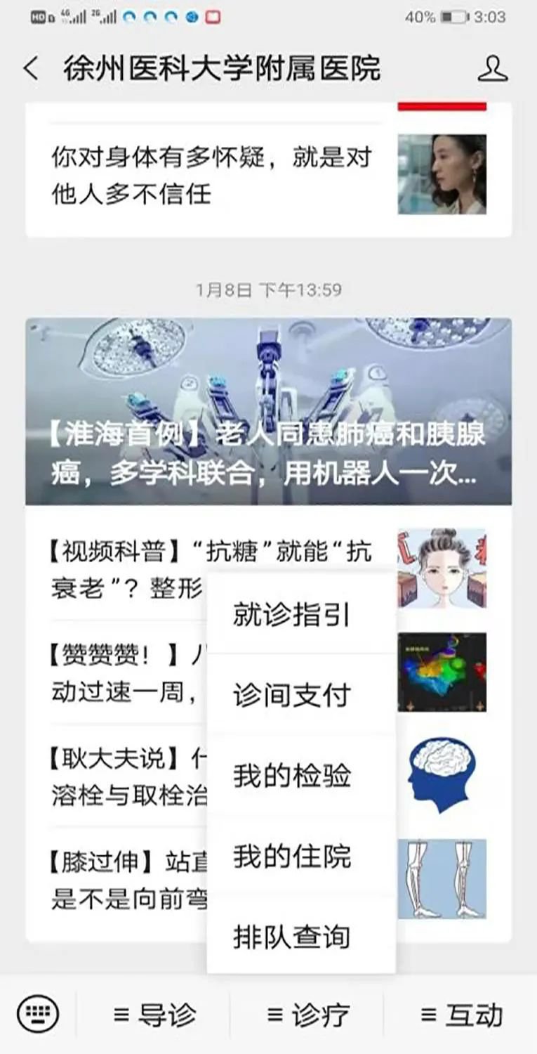 2、关注微信公众号“徐州医科大学附属医院”→我的检验→查询结果
