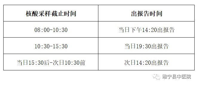 (注:近期核酸采样激增,取报告时间或有延迟)
