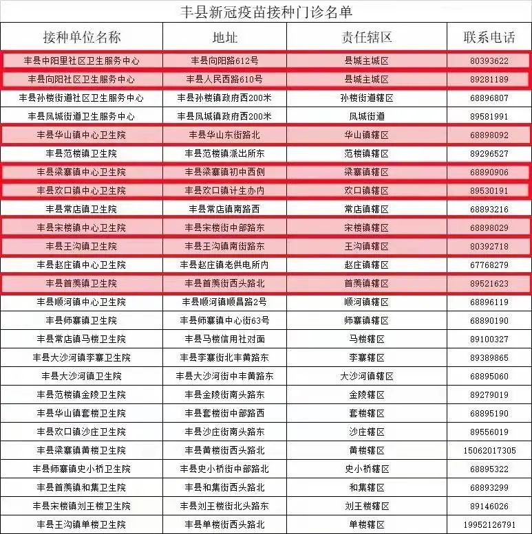 丰县序贯加强针接种点 丰县预防接种门诊部