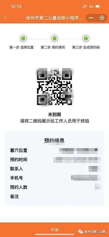 6、生成预约码,到达园区后将二维码展示给工作人员用于核验。