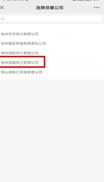 定位徐州市,选择所属供热区域的公司名称绑定供暖卡号