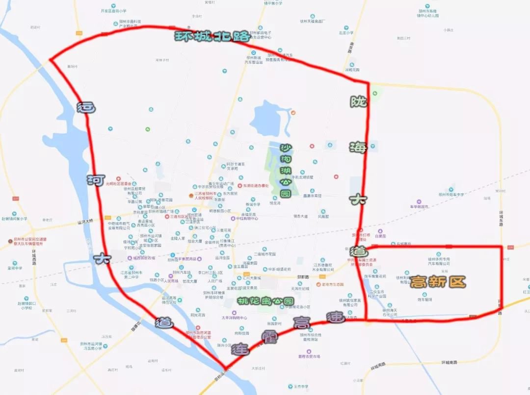 邳州市市区(南至运河大道、东南至连霍高速邳州城区段、东至陇海大道、北至环城北路、西至运河大道)、已建成的高新区区域、全市风景名胜区的核心区域为犬只重点管理区。