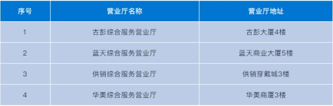 1.古彭营业厅、蓝天营业厅 13:00 — 14:00