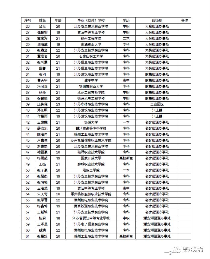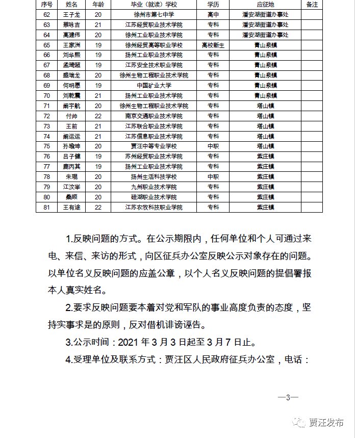 徐州市贾汪区2021年春季征兵合格名单(贾汪征兵拟定人员名单公示)