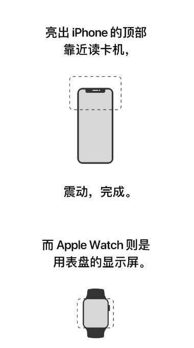淮海通Apple Pay 使用非常方便!用户乘坐公交地铁时,无需唤醒、解锁手机设备,或者打开任何 App,只要将iPhone顶部或Apple Watch的显示屏靠近检票口扫描器中心处附近,“叮”一声,即可完成交易通行。