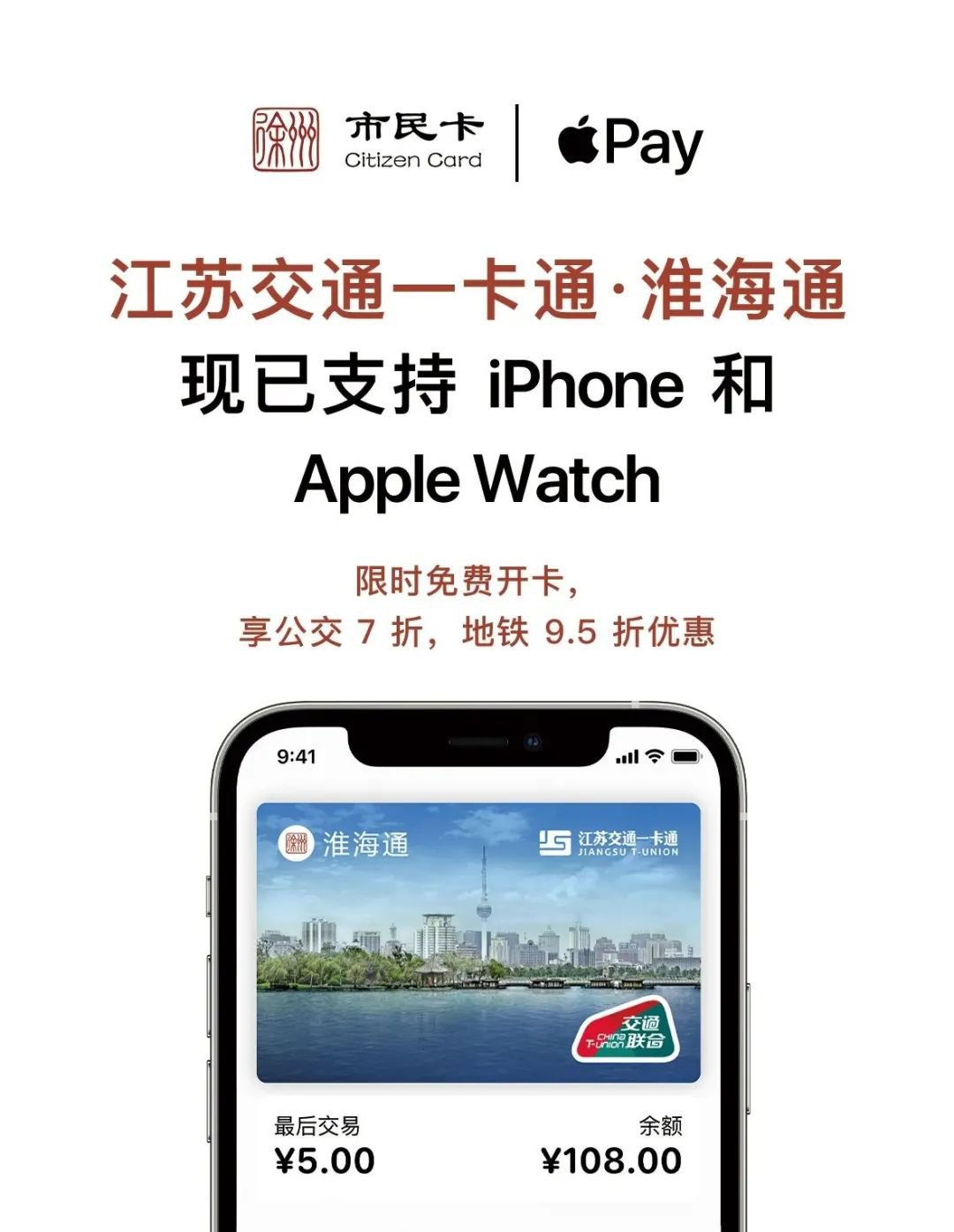你们的福利来了!你的iPhone或Apple Watch支持秒变一张江苏交通一卡通·淮海通实现在徐州公交及地铁刷手机乘车,并支持全国280多个城市公共交通互联互通。
