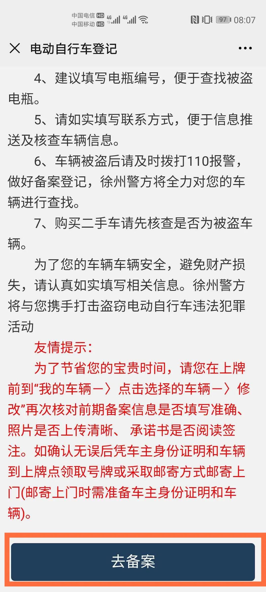 徐州电动车微信备案指南详解 徐州网上申请电动车牌照流程