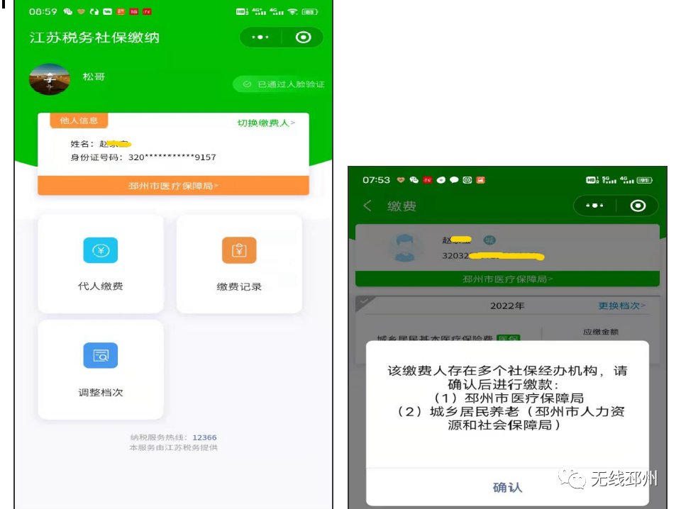 微信、支付宝“江苏税务社保缴纳”小程序缴费(可代他人缴费)。