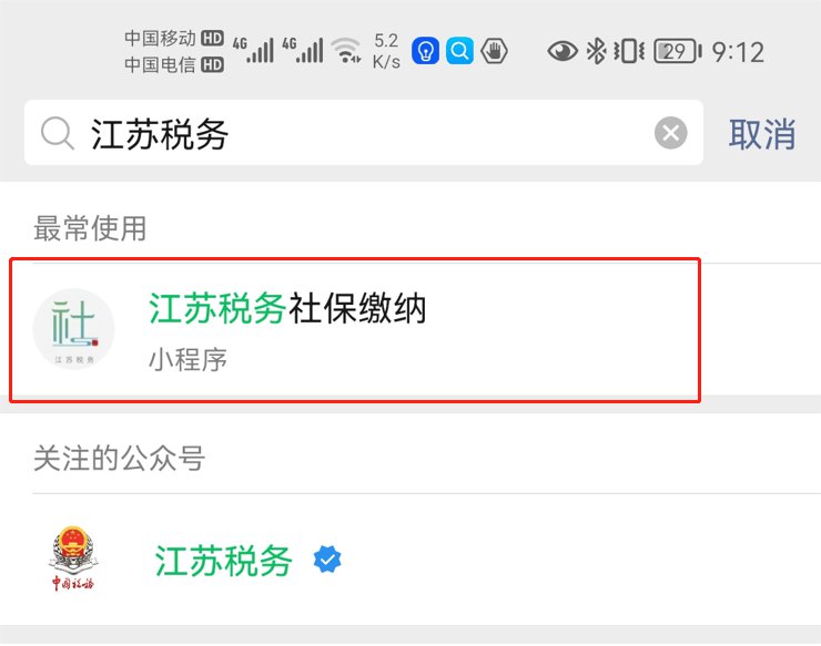 在最上方“搜索小程序”栏输入“江苏税务社保缴纳”