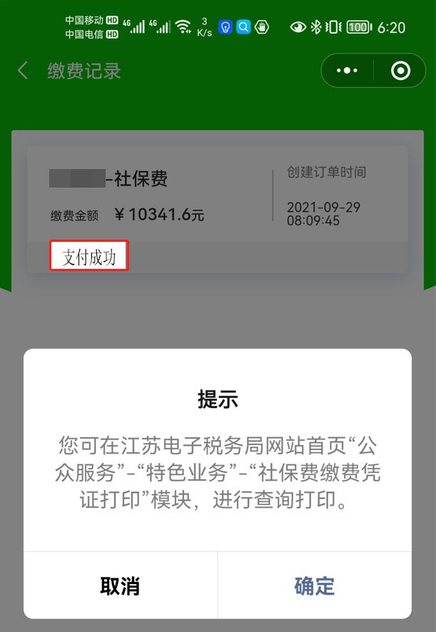 如需获取缴费凭证,您可在江苏省电子税务局网站(百度搜索“江苏省电子税务局”)首页“公众服务”—“特色业务”—“社保费缴费凭证打印”模块,进行查询打印。