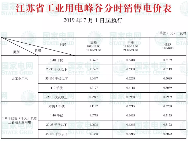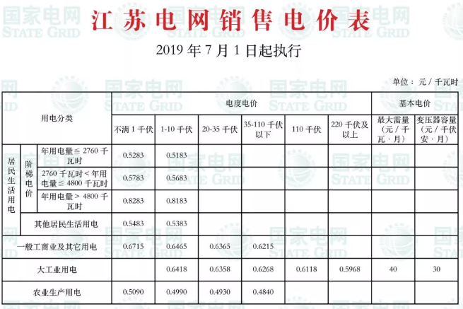 江苏电网销售电价表: