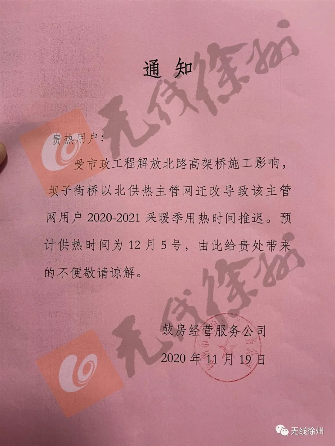 从鼓楼区房产服务中心供热办了解到受市政工程解放北路高架桥施工影响鼓楼区部分直供暖小区将延迟供暖预计供暖日期为12月5日。