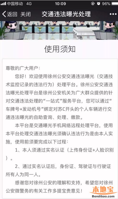 4.对使用须知提示确认无误后,可对本人名下车辆进行违章查询处理,如下图:
