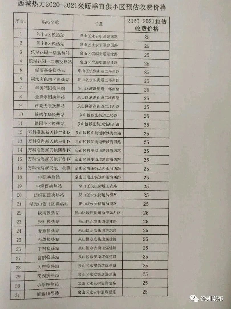 徐州西城热力采暖费收费标准(徐州供暖费用)