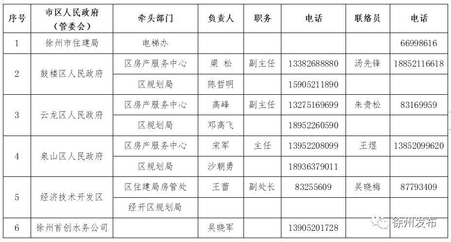 徐州市住建局电梯办及各区房产服务中心一览表