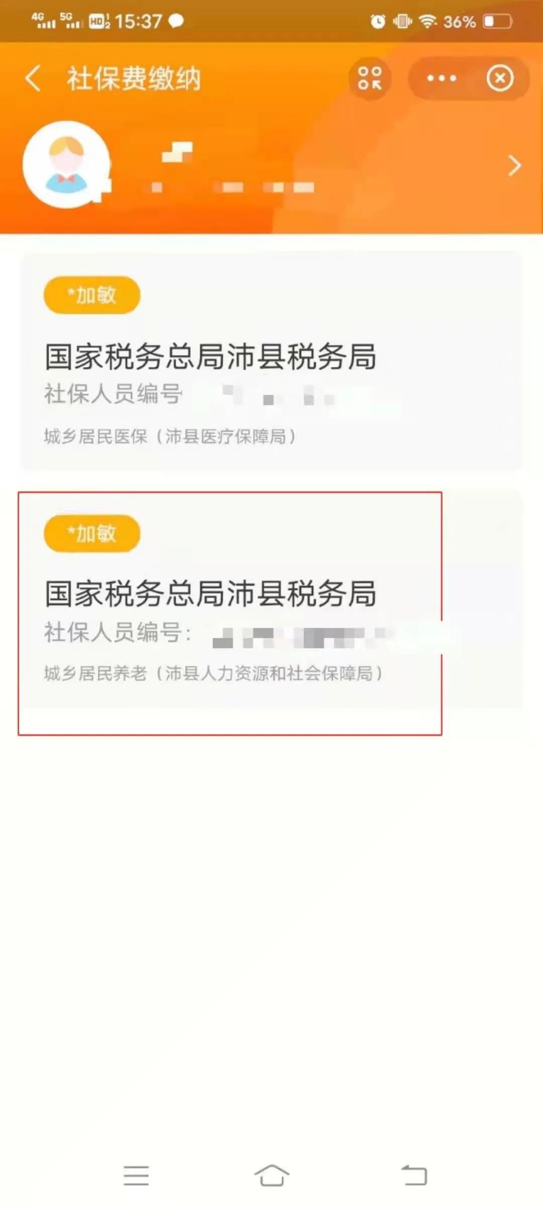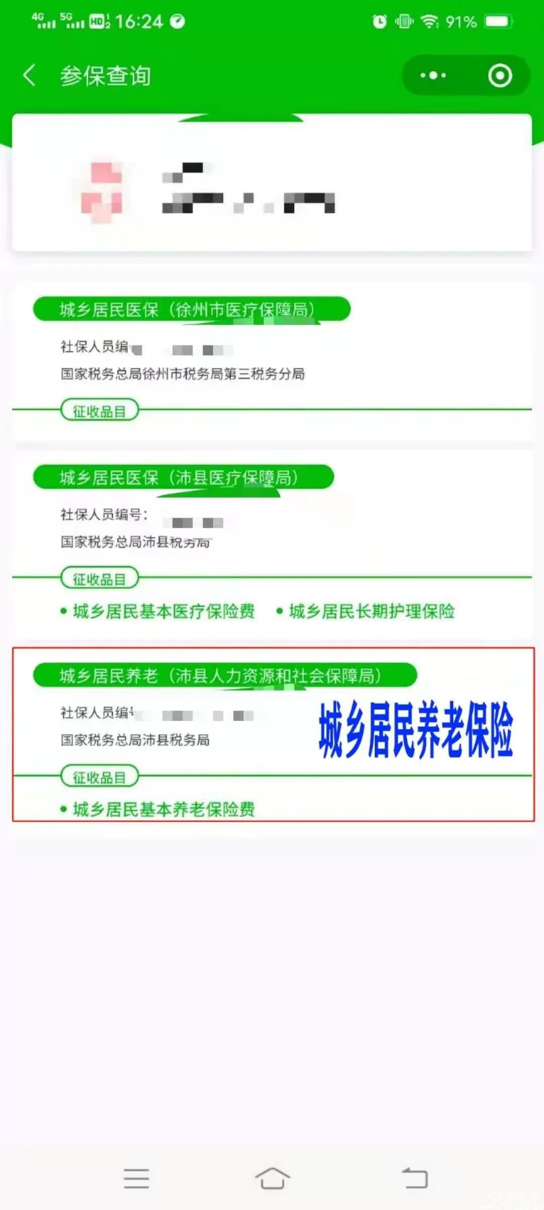 6.选择城乡居民养老(沛县人力资源和社会保障局)这个社会机构,点击进入
