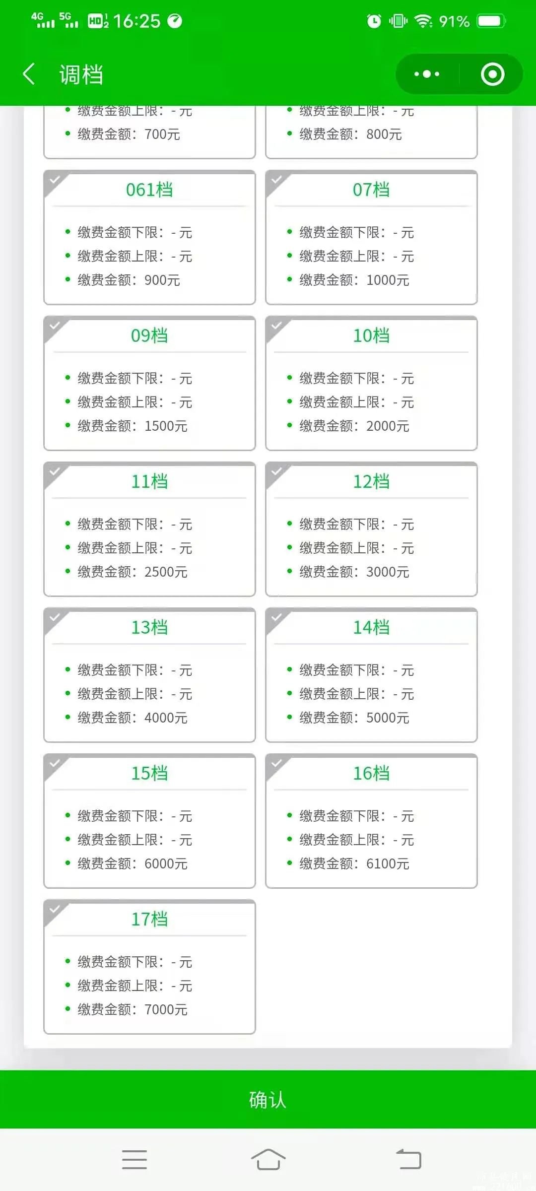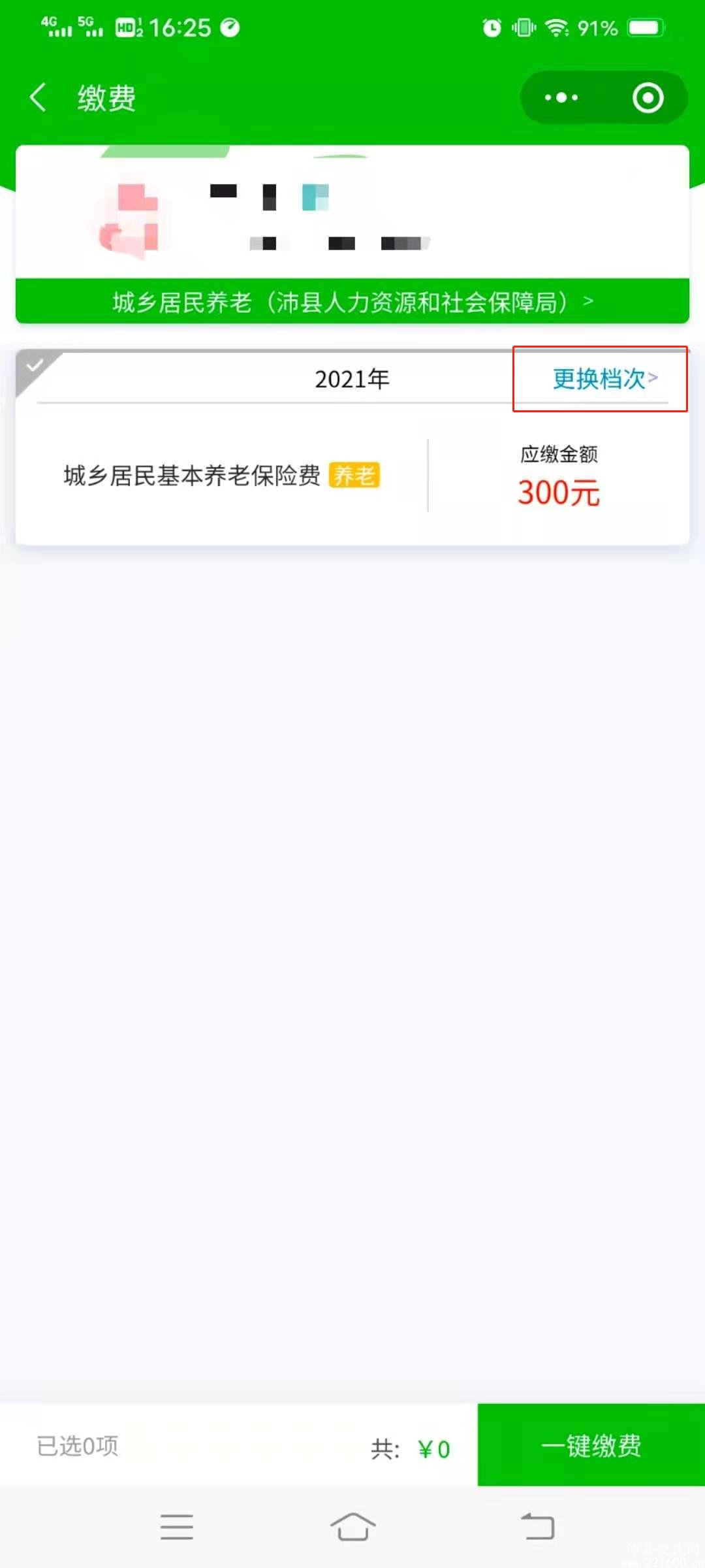 8、如果想调整档次,可以选择更换档次。选择自己适合档次进行缴费。