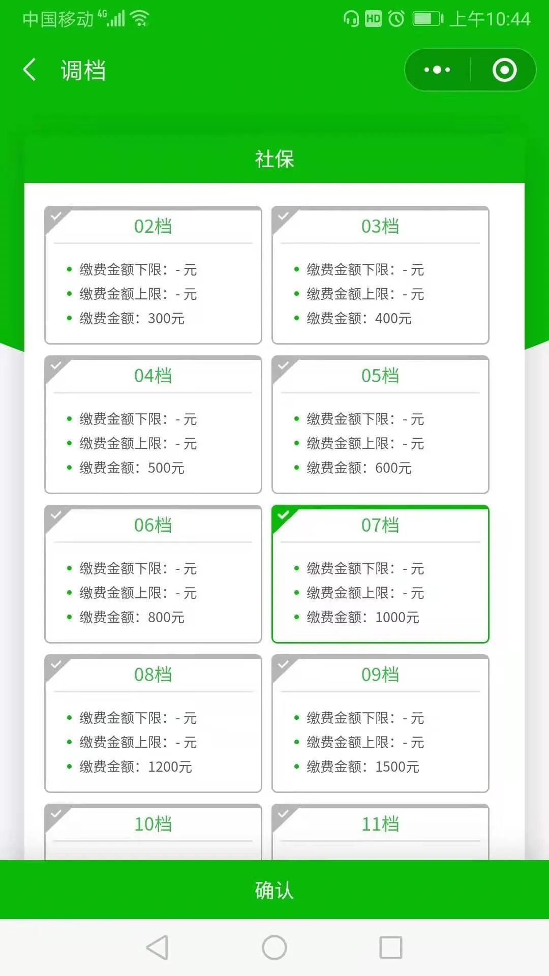 城乡居民养老保险费缴费,微信APP如何选择缴费档次?