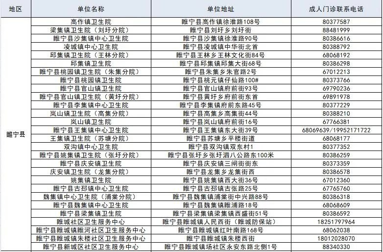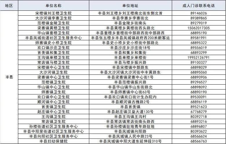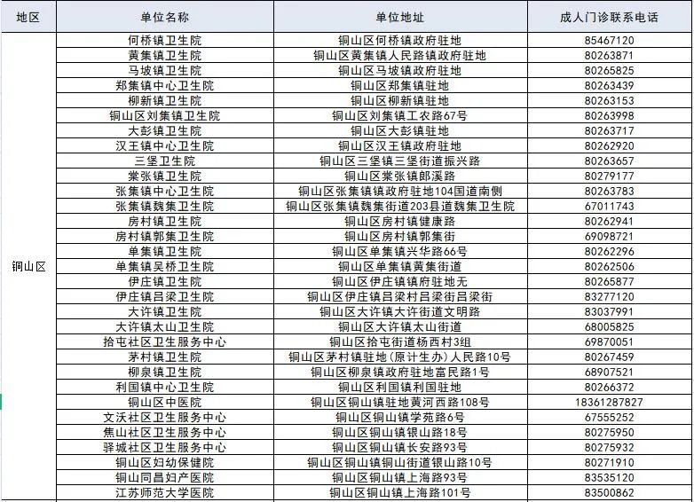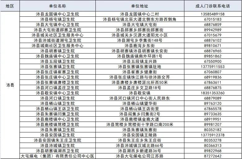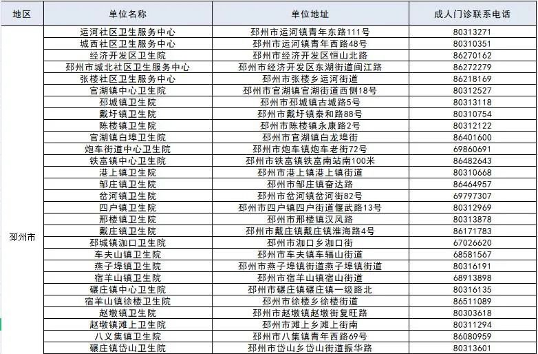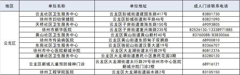 徐州市成人预防接种单位