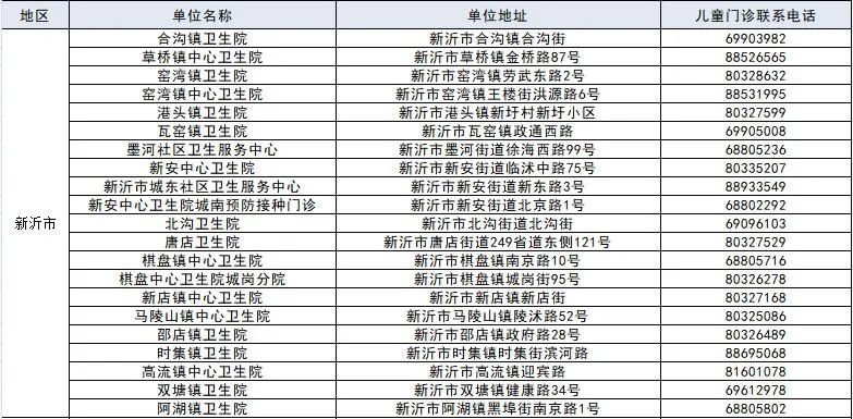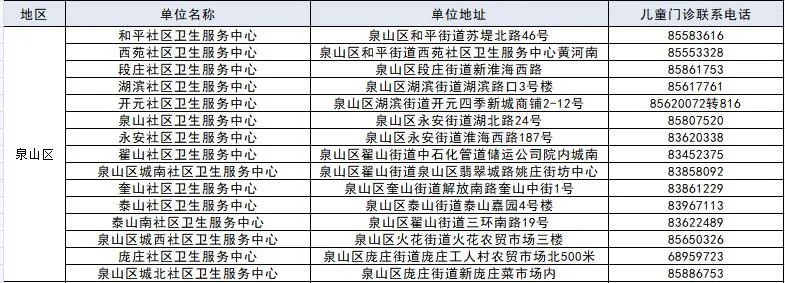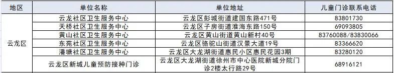 徐州市儿童预防接种单位