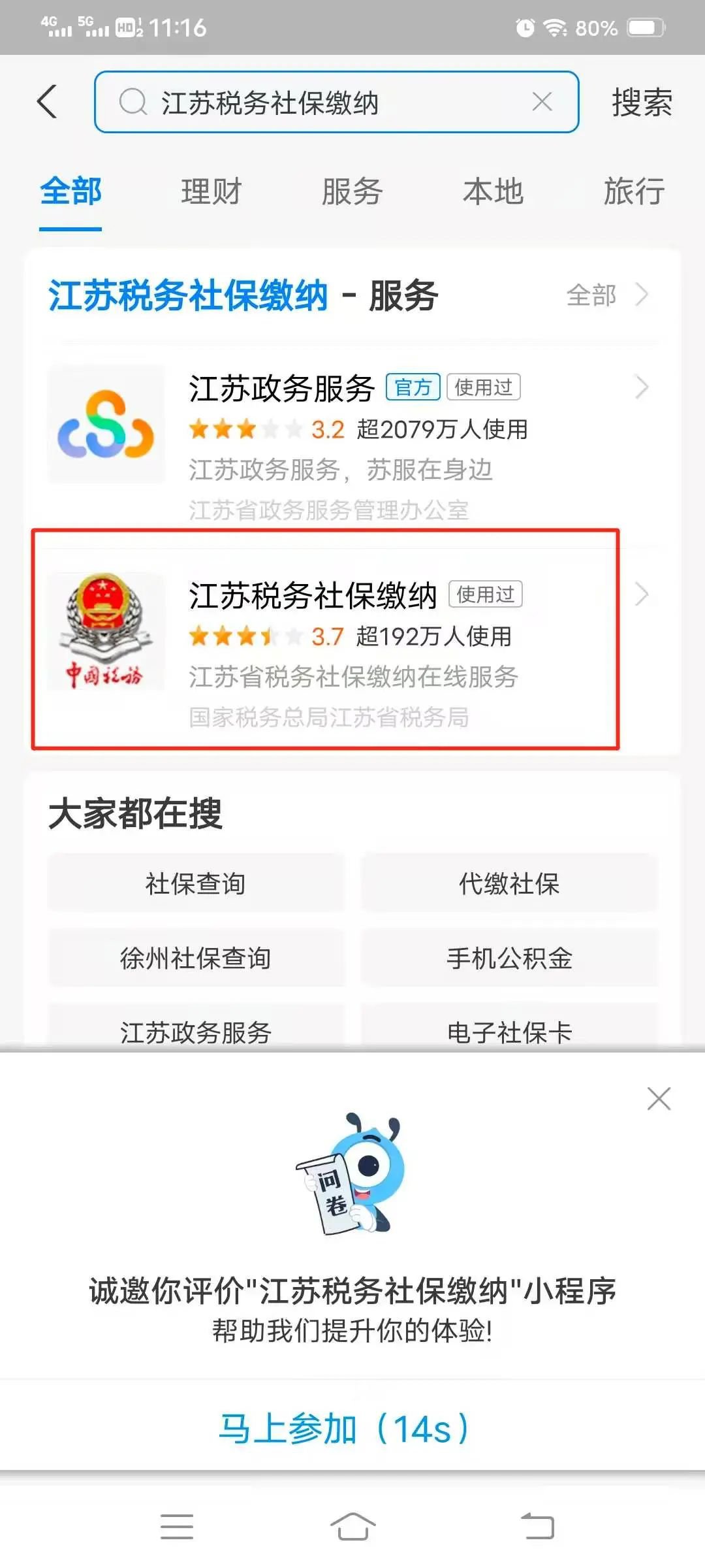 微信、支付宝“江苏税务社保缴纳”小程序。