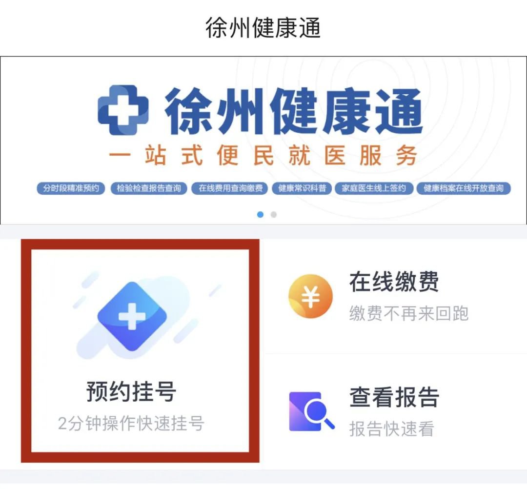 2.首页预约挂号医院列表中,选择徐州市妇幼保健院