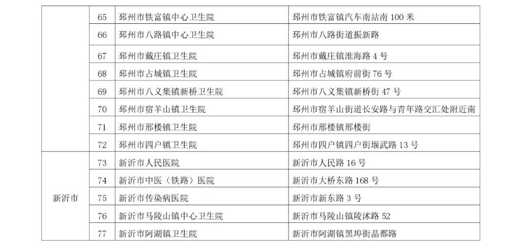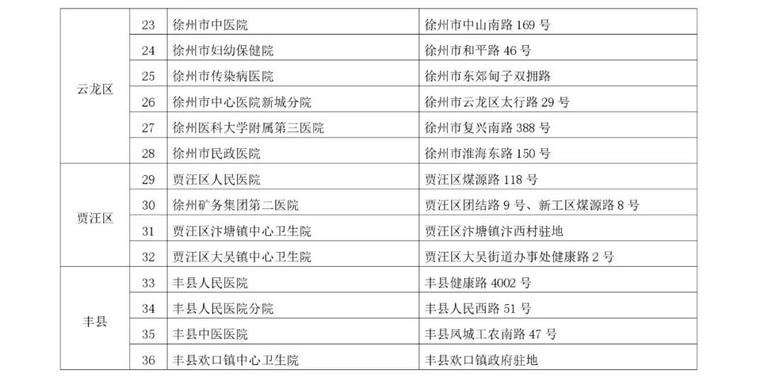 徐州发热门诊名单