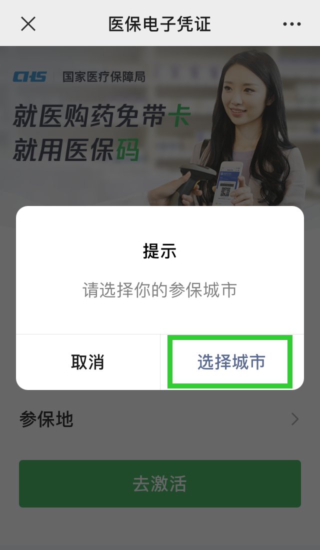 选择参保城市,进入激活界面